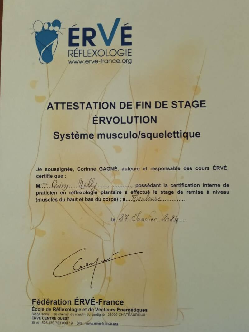 Se former chez ÉRVÉ, c'est avoir l'obligation de justifier de 300 heures de pratique encadrées, de participer activement à trois salons « Bien être » différents, ainsi que de rédiger un mémoire avec soutenance devant jury pour pouvoir prétendre au diplôme de Praticien en Réflexologie Plantaire ÉRVÉ.